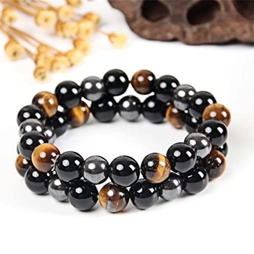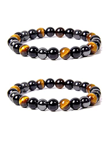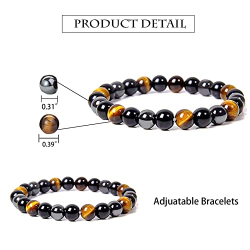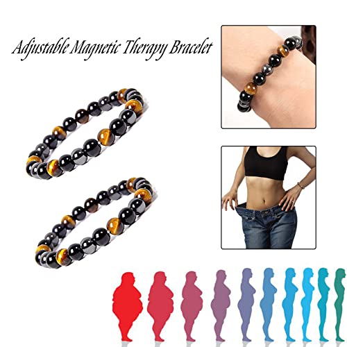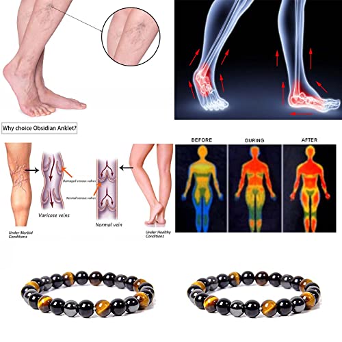 Long tiantian - 2Pcs Anti-Swelling Black Obsidian Anklet Lymph Drainage Tiger Eye Bracelet Adjustable Magnetic Therapy Bracelet Anklet for Men and Women