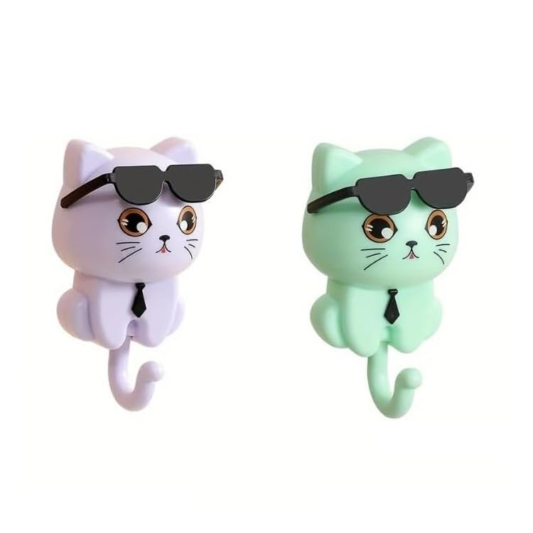 fashion mania - 2PCS Decorative Cat Wall Hook,Sunglasses and Tie Design,Storage and Wall Decoration for Home,For Hanging Hat, Keys, Towel