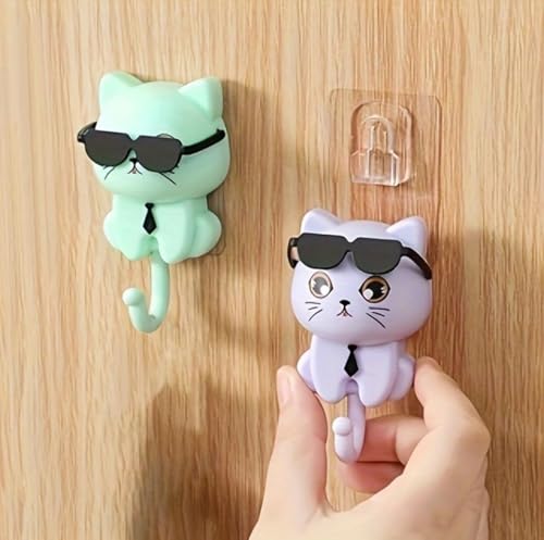 - 【DESIGN FEATURES】Adorable cat-shaped wall hook with sunglasses and tie design, adding a stylish decorative touch to any room.