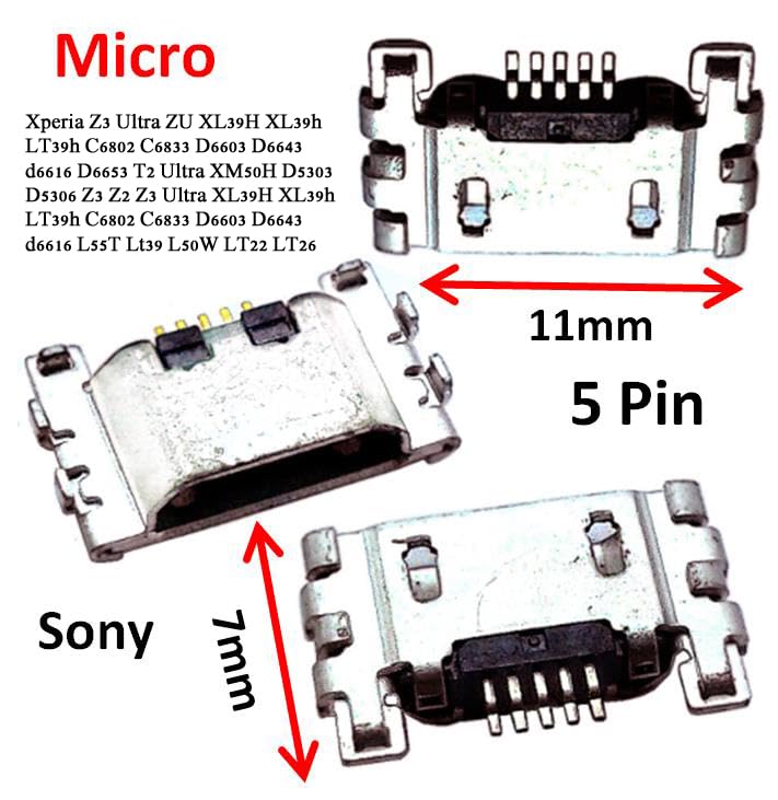 Generic - 2Pcs Female Port 5P SMD SMT Micro USB 2.0 Charging Socket Jack B Type 5 Pin Mini Connector Repair D6653 T2 Ultra XM50H D5303 D5306 Z3 Z2 L55T