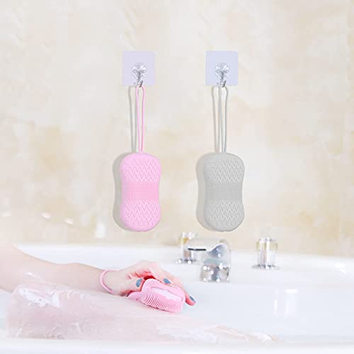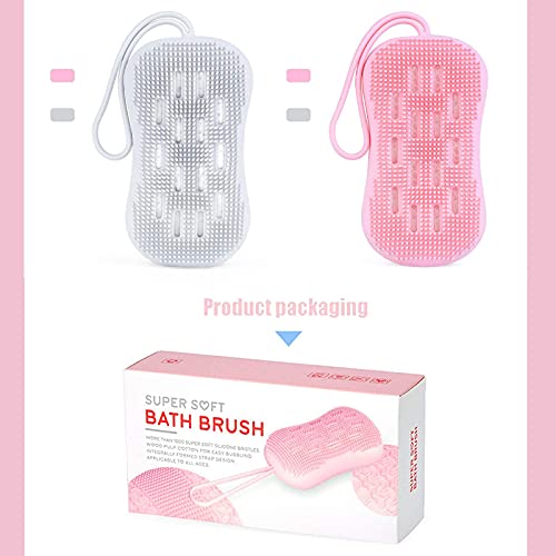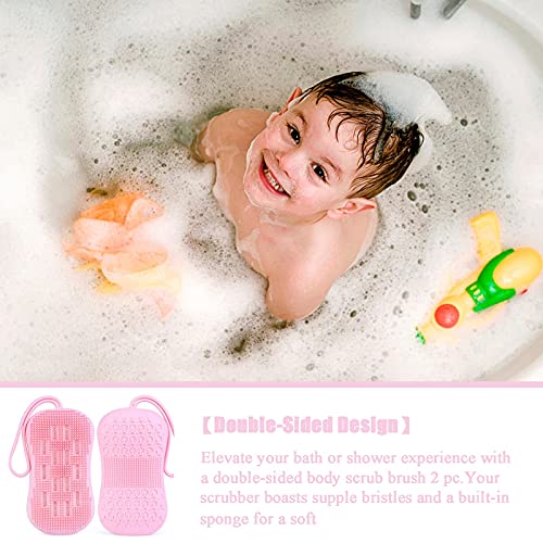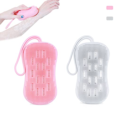 - 🧽【Double-Sided Design】: Elevate your bath or shower experience with a double-sided body scrub brush 2 pc. Your scrubber boasts supple bristles and a built-in sponge for a soft, soapy massage that stimulates circulation. No damage to sensitive skin, and silicone material is more durable than other materials.