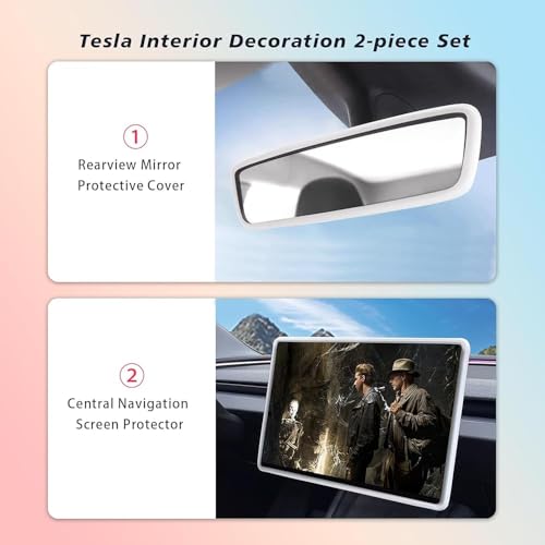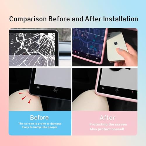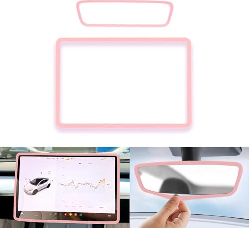 GQ - 2PCS for 2017-2024 Te-sla Mo-del 3/2021-2024 Te-sla Mo-del Y Central Navigation Screen Protector Decorative Frame and Mirror Silicone Protective Cover Interior Accessories (Pink)