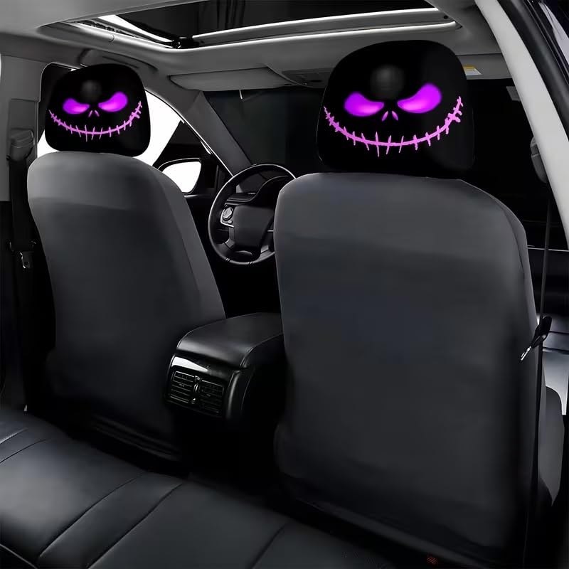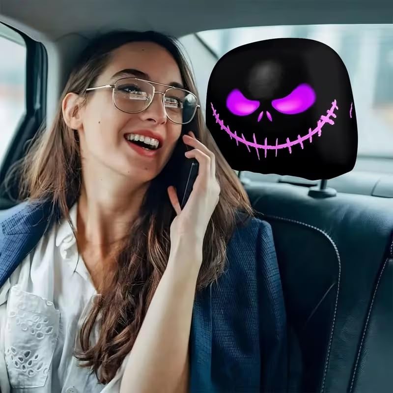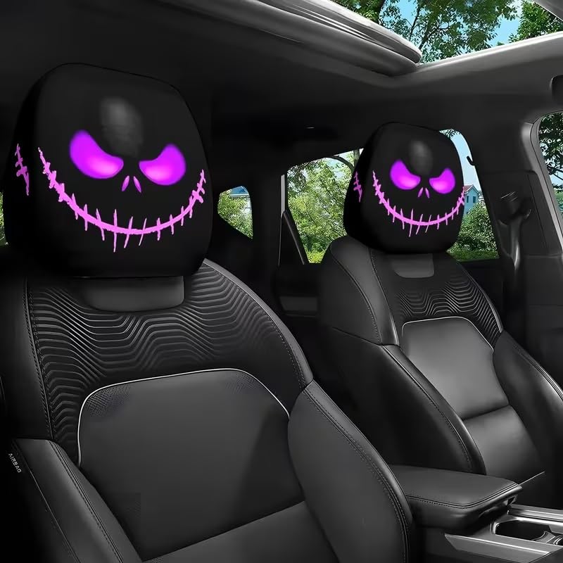 Generic - غطاء مسند الرأس بتصميم ملك اليقطين (قطعتان)، واقي وسادة مقعد عالمي للسيارات والشاحنات، اكسسوارات تزيين السيارة