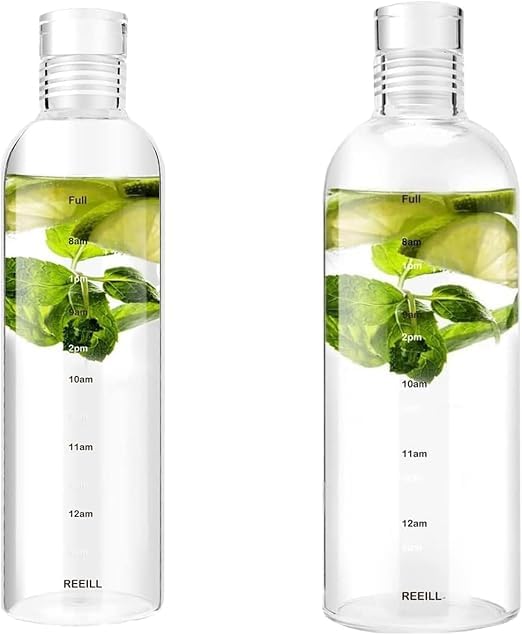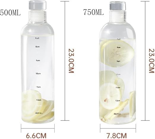 Generic - 2Pcs High Borosilicate Transparent Glass Bottle with Printed Time Scale, Portable Drinking Bottle for Office, Home, 500ML&750ML