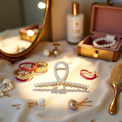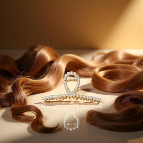 Calsgkspray - مشابك شعر معدنية كبيرة غير قابلة للانزلاق للنساء مع لؤلؤ، سميكة ذات سن لولبي على شكل الكابوريا باللونين الذهبي غير اللامع والبيرال جولد قطعتين