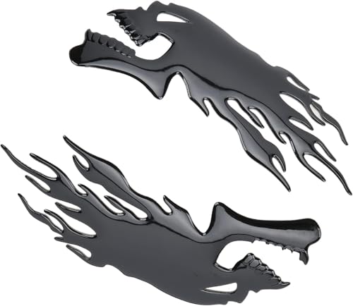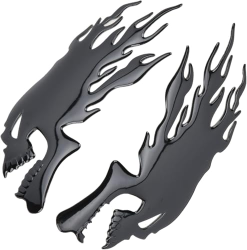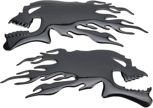 fashion mania - 2PCS Motorcycle Fuel Sticker, 3D Flame Skull Decal Decorations Universal for Motorcycle (Black)