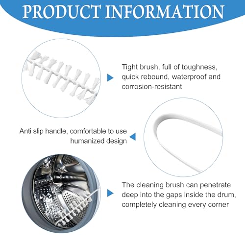 - [Design]-Non-slip handle is comfortable to use, the drum cleaner washing machine bristles are flexible, easy to penetrate into the washing machine rubber ring to clean the dirt.