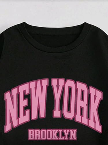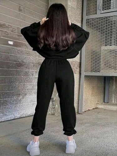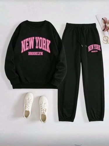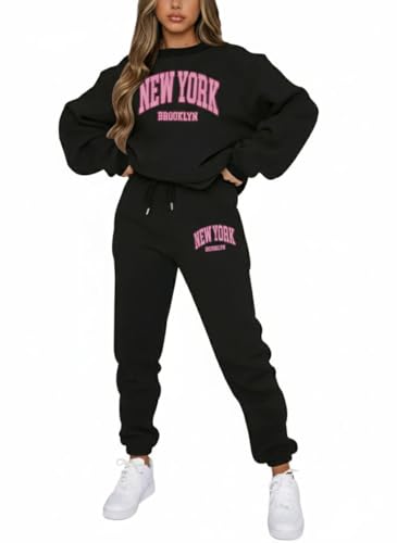 Generic - طقم سويت شيرت برقبة دائرية وأكمام طويلة بتصميم مطبوع مع بنطلون رياضي شتوي من القطن للنساء من 2 قطعة