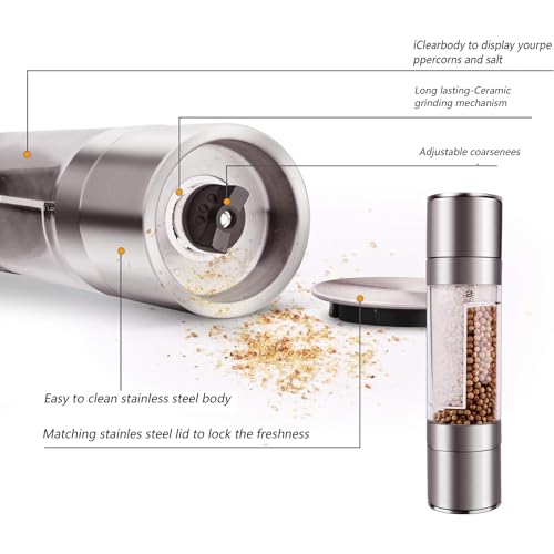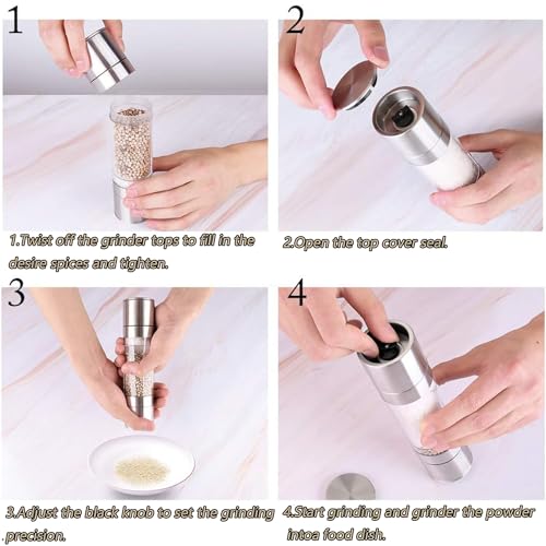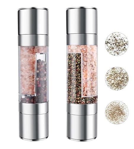 HIHIDAY - 2pcs salt and pepper grinder set 2 in 1 Stainless Steel Pepper Mill and Salt Mill With Adjustable Coarse Mills Sea Salt, Black Pepper, Fits in Home, Kitchen, Barbecue