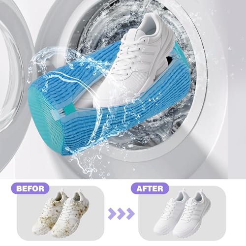 - Upgraded 360° Deep Clean for Shoes: Featuring over 1,000 chenille fabric "tentacles" and 3 additional cleaning strips connected to a durable, breathable mesh, allowing for a 360° deep clean as water and detergent flow through it. These shoe washing bags effectively clean shoes while protecting them from damage, ensuring a deep clean without abrasion.
