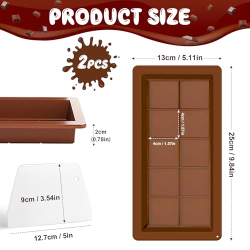 - [تحتوي العبوة] قطعتان من قوالب الشوكولاتة العميقة وملعقة سباتولا. مثالية للشوكولاتة المصنوعة منزليًا، املأ قوالب الحلوى بالمكسرات والوجبات الخفيفة والمربى المفضلة لديك لإنشاء بارات شوكولاتة محشوة فريدة من نوعها.
