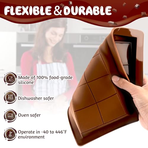 - [سهلة إخراج القالب] قوالب بار الشوكولاتة السميكة لدينا غير سامة وبلا رائحة، ويمكن إخراجها بسهولة بمجرد لفة ودفع، والسطح أملس بما يكفي لتحقيق تأثير غير لاصق، وهي سهلة التنظيف، ما عليك سوى غسل قوالب البار يدويًا بالماء والصابون حتى تتمكن من استخدامها بثقة.