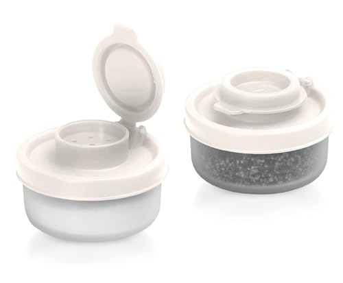fashion mania - قطعتان من حاويات الملح الصغيرة مقاومة للرطوبة، حاويات توابل للسفر والنزهات والتخييم في الهواء الطلق (أبيض)