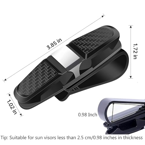 - 🚘Package and Size of Sunglasses Holder for Car: Size: 3.85 x 1.7 in/97 x 43 mm. Quantity: 2 pieces silver sunglasses holder for car, which will take up little space in your car, whether clipped to your sun visor when in use or stored away when not in use, in sufficient quantity to eliminate the need to purchase additional accessories.