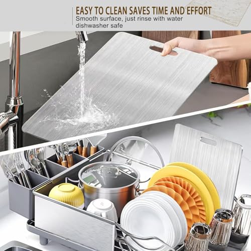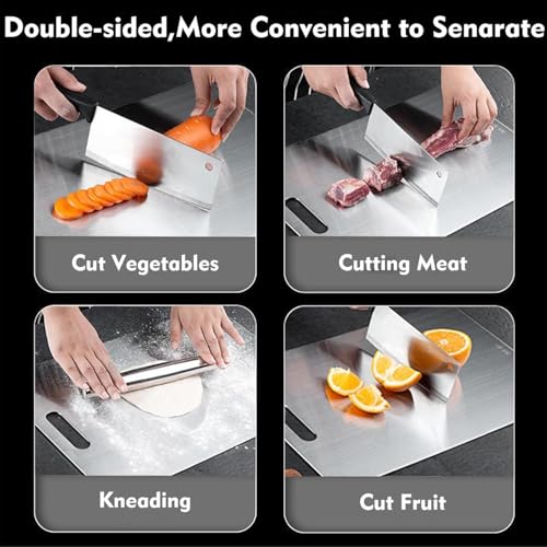 DURNYDT - 2PCS Titanium Cutting Board, Stainless Steel Chopping Board, Double-Sided Food Grade Cutting Board, Dishwasher Safe Ideal for Handling Meat and Vegetables,Easy to Clean