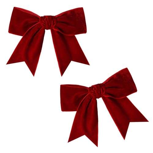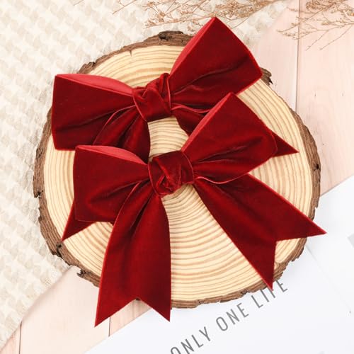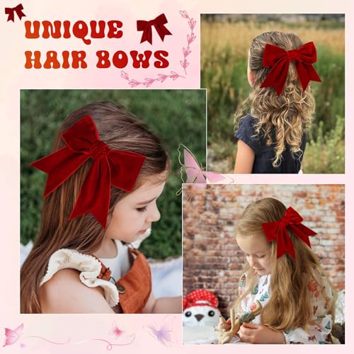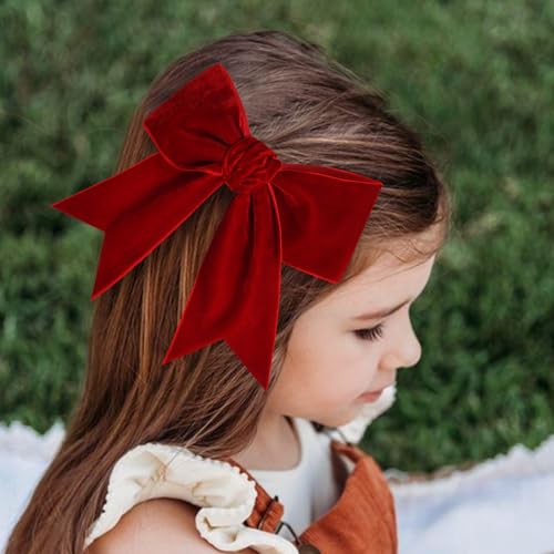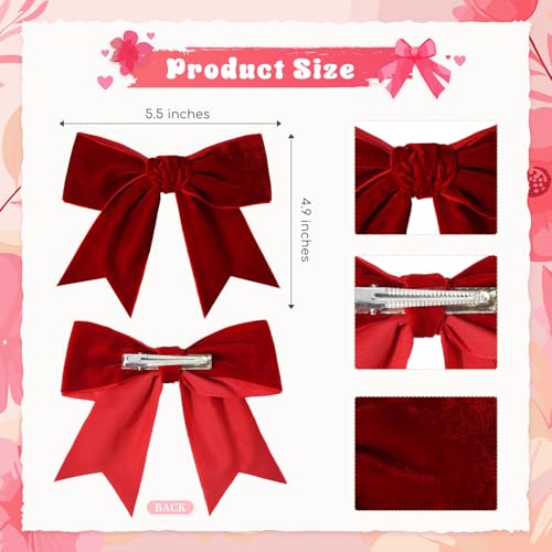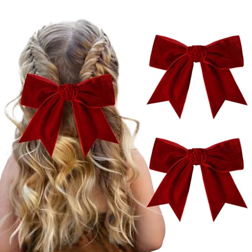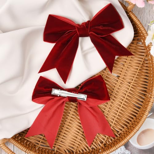 Aileam - قطعتان من مشابك الشعر المخملية على شكل فيونكة شعر بلون احمر، اكسسوارات حامل ذيل الحصان، مشابك شعر معدنية للنساء والفتيات الصغار والمراهقين والاطفال