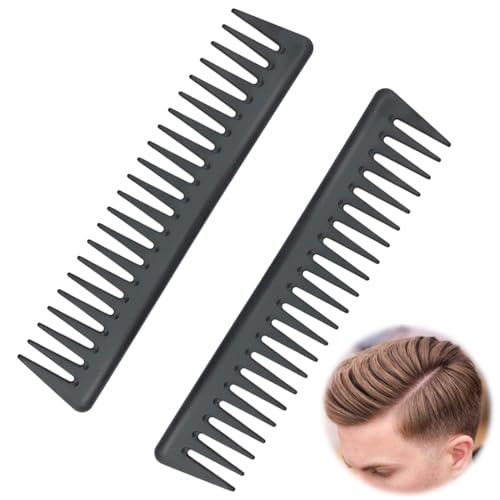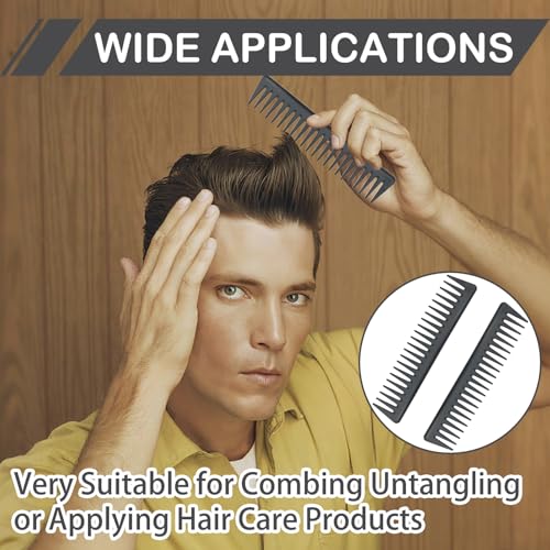Joysuelly - 2Pcs Wide Teeth Combs, Antistatic Unbreakable Carbon Fiber Hair Combs, Wide Teeth Brush Hair Combs Antistatic Barber Styling Men and Women for Beard and Hair