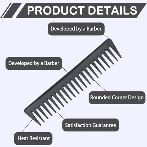 - ANTI-STATIC EFFECT FOR DISCIPLINED HAIR - Carbon fiber technology reduces static electricity, keeping hair soft and tidy. This anti-static wide tooth barber comb prevents frizz and improves natural shine, making combing easier and more precise without damage.