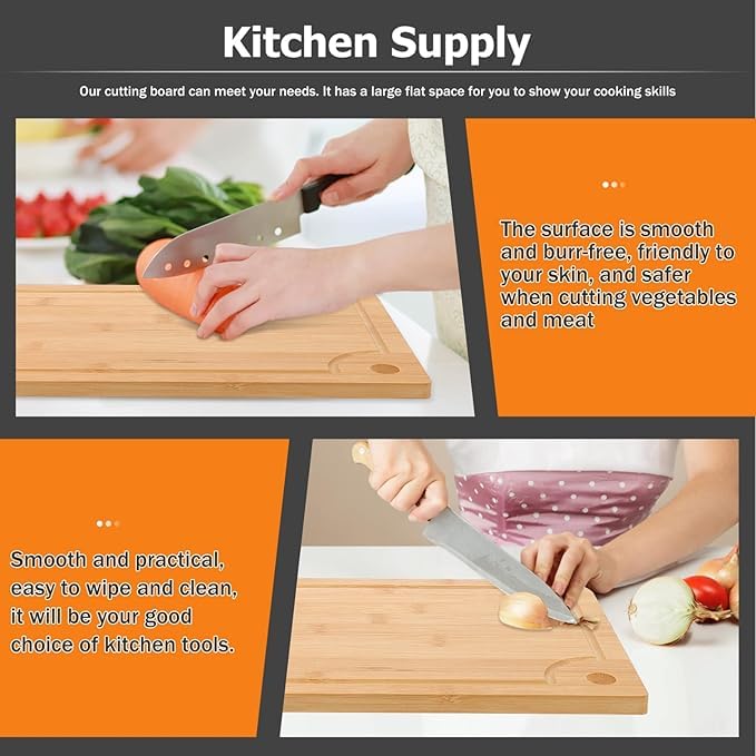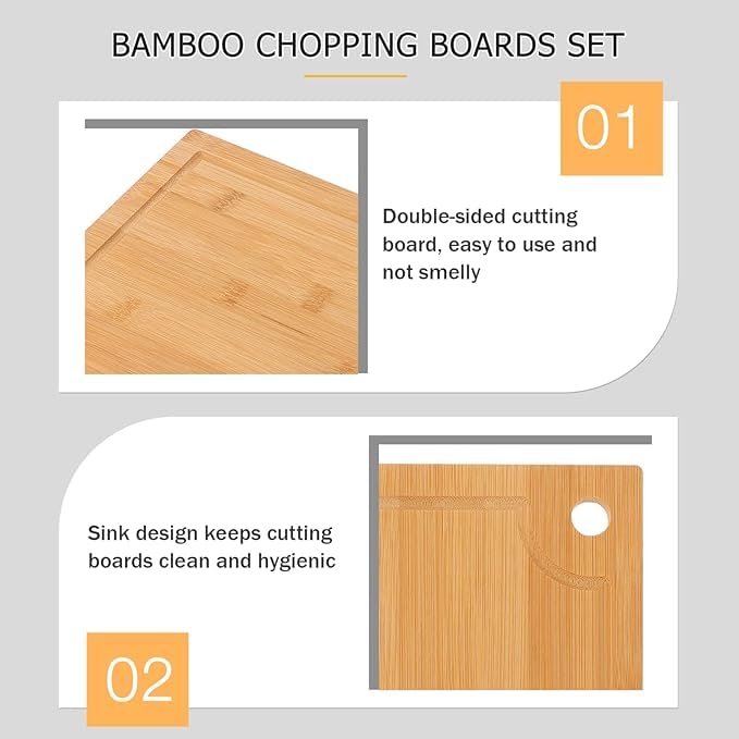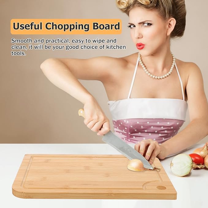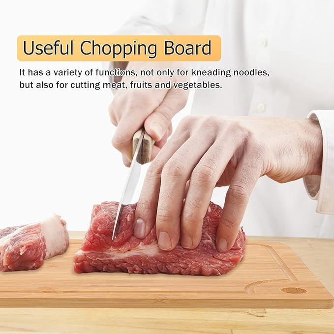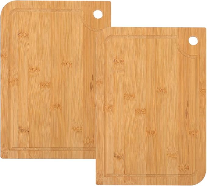 Generic - 2pcs Wood Chopping Board Kitchen Cutting Board Double Sided Serving Board Dough Kneading Boards with Juice Groove and Hole for Fruit Bread Meat Vegetable Cheese