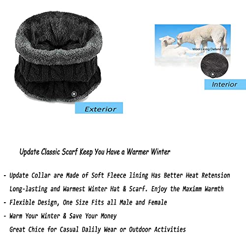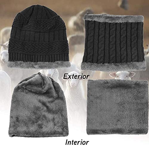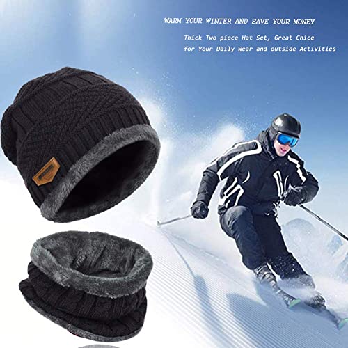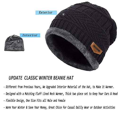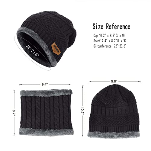 Kawior - 2pieces Mens Winter Beanie Hat Fleece Lined Scarf Set Knit Warm Thick Skull Cap Neck Warmer for Men & Women Black