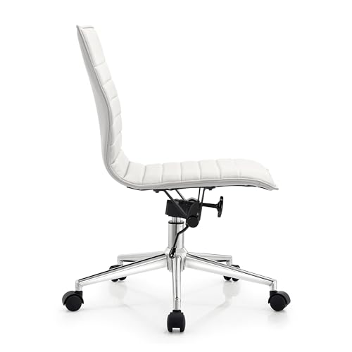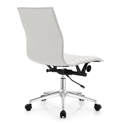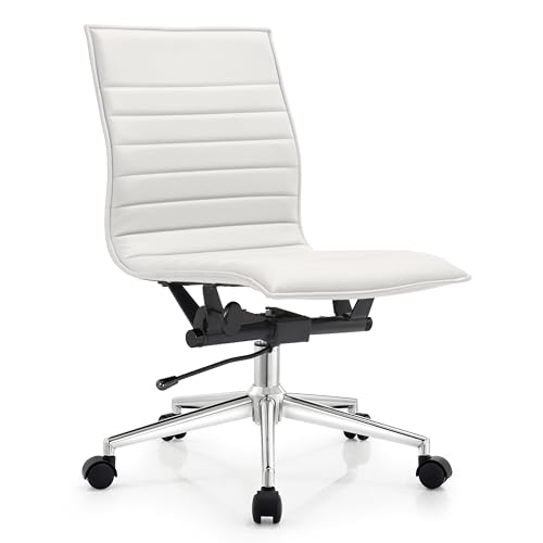 2xhome - 2xhome Modern Office Desk Chair Mid Back Ribbed PU Leather Conference Task Armchair with Swivel Tilt & Adjustable Height, White, Single, Set of 1