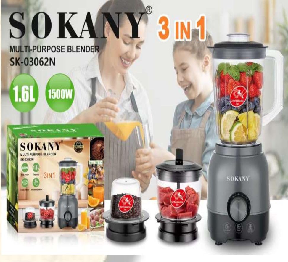 SOKANY - خلاط سوكاني 3 في 1 بقوة 1500 وات – SK-03062N