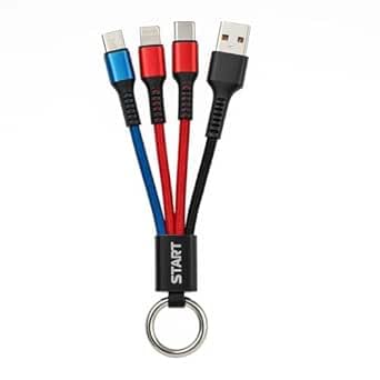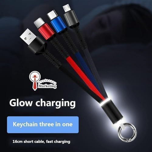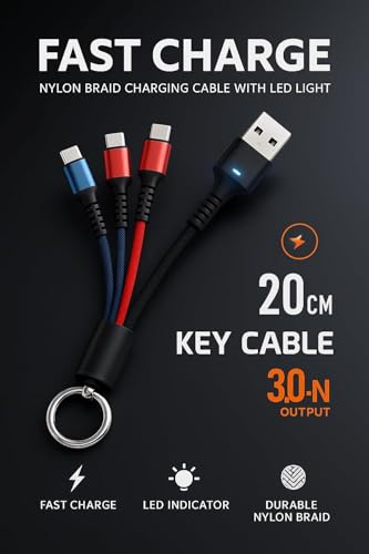 Generic - وصلة شحن 3 في 1 ميني سلسلة مفاتيح ST-165 - كابل Type-C و Lightning و Micro USB بطول 20 سم - شحن 3.1 امبير ونايلون مضفر مع إضاءة LED - 3-in-1 Keychain Cable