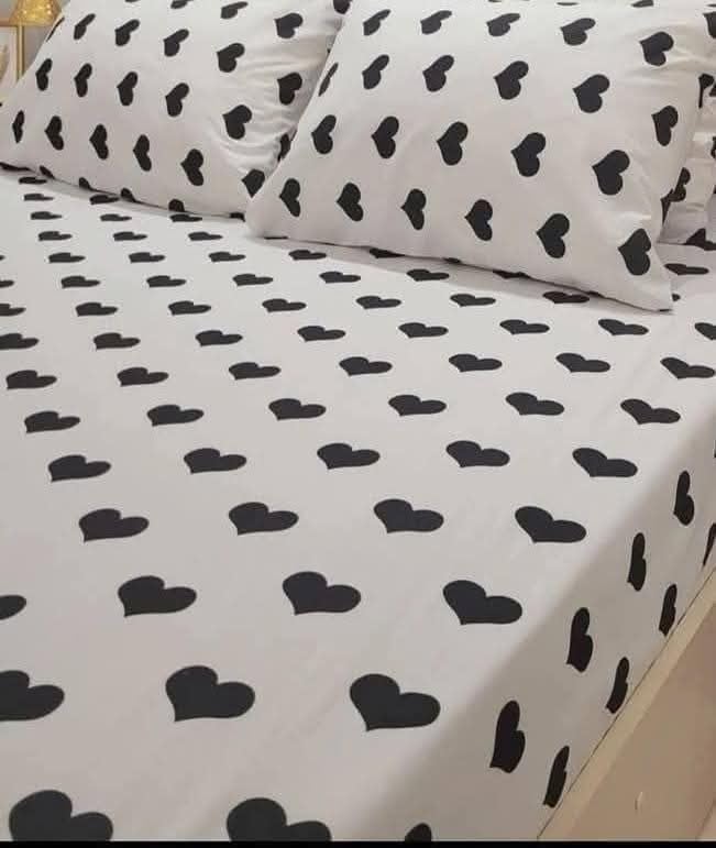 Generic - طقم ملاية فندقي 3 قطعه مثبتة بأستيك يناسب المنزل والفنادق والورقات التويه (أبيض قلوب اسود, مبراري200x200سم)