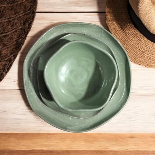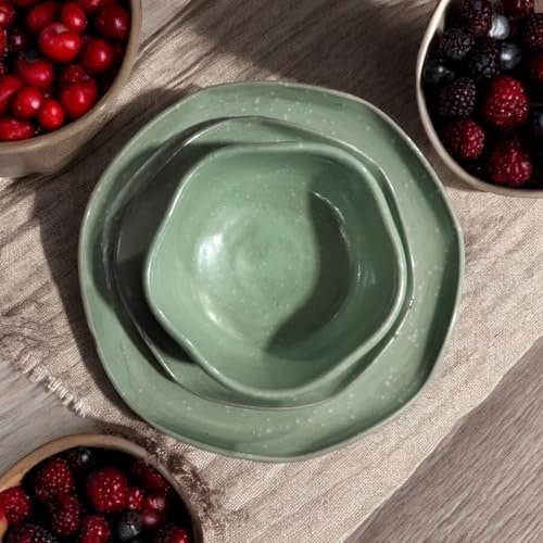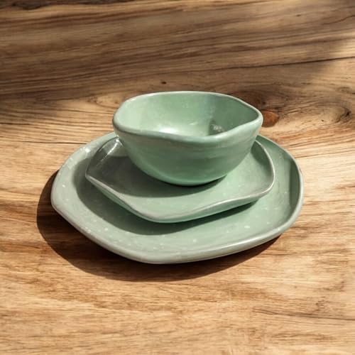 - Stoneware Plate 3 Piece Dinner Set - 10" Medium Plate - 7" Bowl