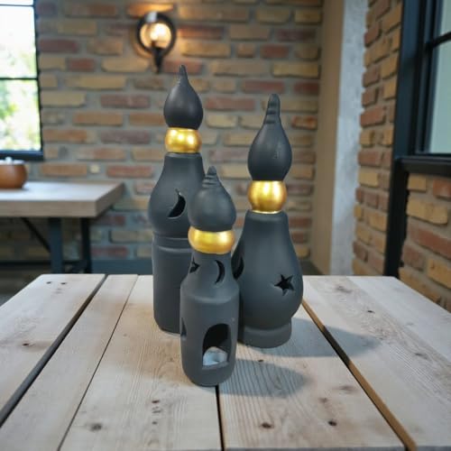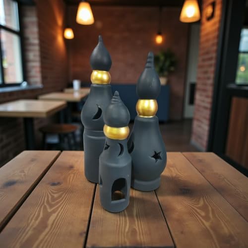 Generic - طقم فوانيس 3 مقاسات بدون الشمع من الفخار للديكورارتفاع 35. 25. 13 -fan2