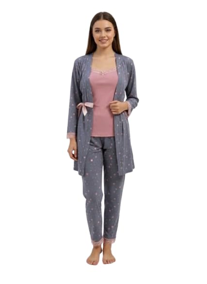 Generic - بيجامة شتوي كاجوال للنساء من 3 قطع مقاس موحد كود 3528