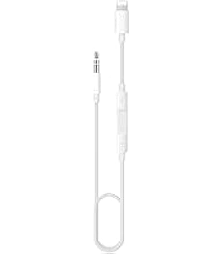 - كابل صوت للسيارة 3.5 ملم لسماعات الرأس للسيارة مع تحكم في الصوت والأغاني، سلك ايه يو اكس المحمول، محول مقبس سماعة الرأس لايفون 14/13/12/11/XR/X/8/7 ابيض LAO-512