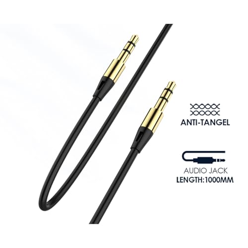 Generic - 3.5mm Aux Audio Cable Male to Male, 1M Length, Gold Plated Connectors, Anti-Tangle Design, Black, for Car Speaker, Headphone, Phone, Computer