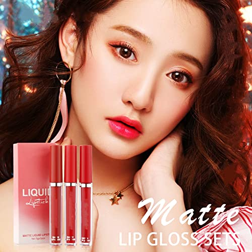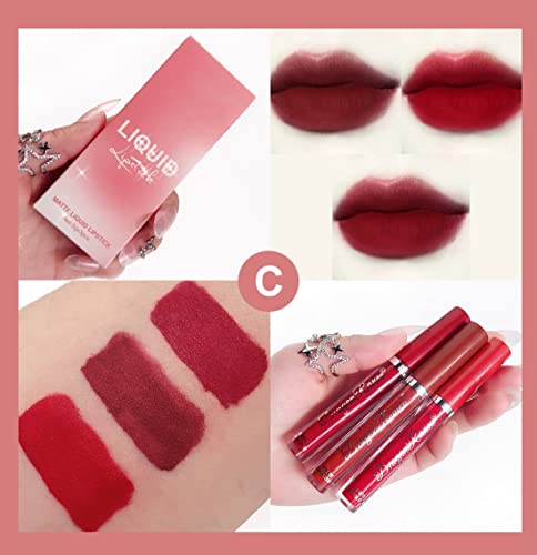 ChaneeHann - مجموعة احمر شفاه مات من 3 الوان، حبر شفاه مقاوم للماء ويدوم طويلا، ملمع شفاه كوب غير لاصق للمكياج ومستحضرات التجميل والسوائل، مجموعة هدايا