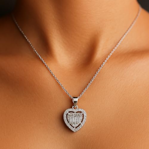 3 Diamonds - 3 Diamonds 337015953936650 Silver-Colored Heart Pendant Necklace with Zircon Stones, Platinum & Rhodium Plated