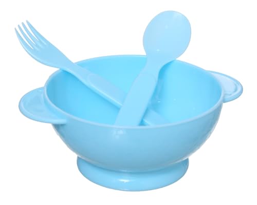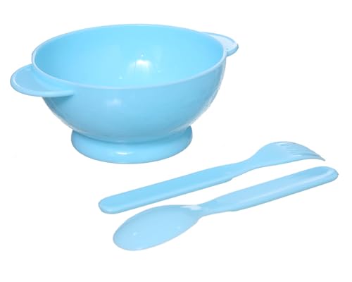 Generic - طقم طعام بلاستيك للأطفال 3 قطع (طبق + معلهه + شوكه) - ازرق فاتح DR-A-628