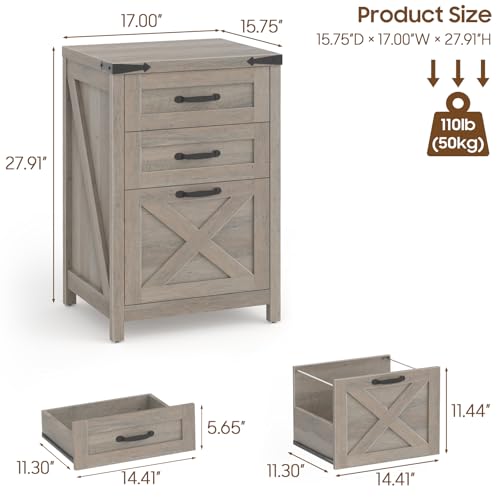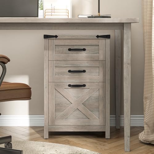Halitaa - خزانة ملفات خشبية صغيرة بـ 3 أدراج عمودية بنمط ريفي تناسب الملفات مقاس A4 وليتر توضع أسفل المكتب للمكتب المنزلي وحامل طابعة، لون رمادي