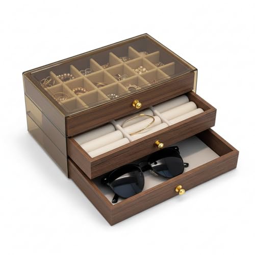 - Wood Accessory Organizer with 3 Drawers for Organization Organizer, Elegant Jewelry Organizer