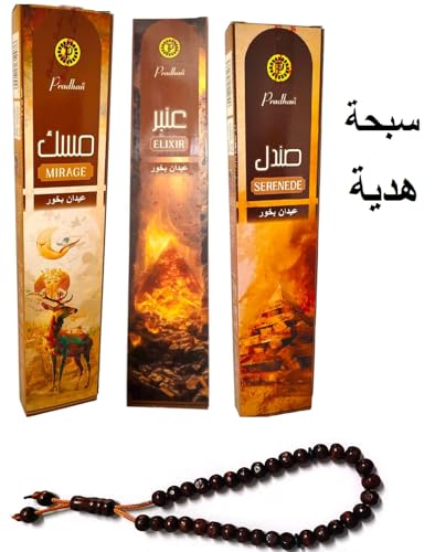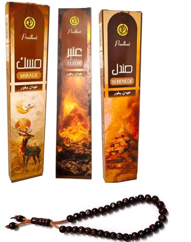 Pradhan - سبحة هدية مع 3 علب بخور بردهان EXTRA الهندى بالعطور (مسك و صندل و عبر) عطور شرقي فاخر - كل علبة فيه 20 عود