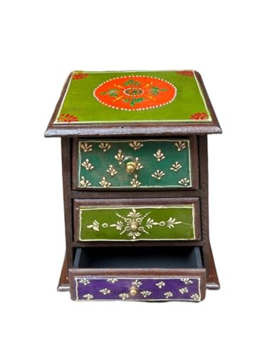 Generic - منظم اكسسوارات وحلى مستورد هندى وسودانى💄 3 درج من الخشب الشيشامى العتيق 💰 مصنوع هاند ميد بدقه عاليه 💎ملون بالالوان الطبيعيه وليست الصناعيه 🧿 ( مقاس صغير للاكسسوارات ) 21 سم فى 23 سم فى 12 سم ⚜️