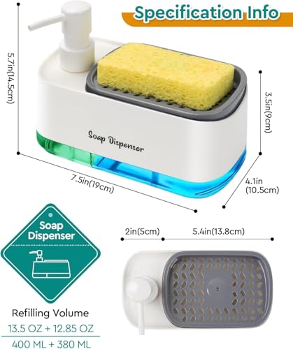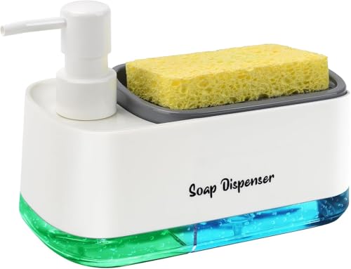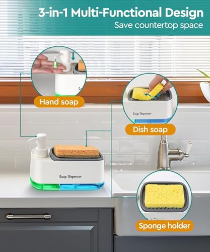 - 3-in-1 design combines a soap dispenser and a sponge holder to organize your kitchen sink space