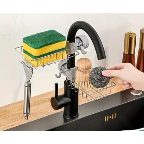 - The built-in sponge holder helps keep the sponge or cleaning brush in a custom place, with a design that allows water to drain quickly to reduce unwanted moisture and odor buildup, keeping cleaning tools dry and clean longer. This feature makes the set perfect for everyday use in home kitchens and modern kitchens.