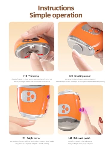 - 【Effortless & Safe to Use】 Open the lid, press the power button, and insert your nail into the trimming slot. Gently move the device side to side — no need to apply pressure. Unlike traditional clippers, this electric tool ensures smoother, safer, and more precise results.
