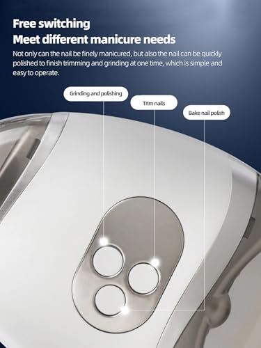 - 【Dual-Speed Operation with Independent Controls】 Features two adjustable speed settings (low/high) to suit different nail types. Activate the device by pressing both buttons together. Use the left button to power the nail polisher, and the right button for the nail trimmer — tailored control at your fingertips.