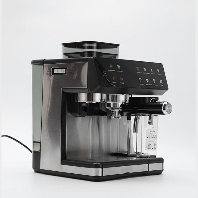 Generic - ماكينة قهوة إسبريسو 3 في 1 بقوة 1350 وات – طحن حبوب القهوة وتبخير الحليب في جهاز واحد – ضغط 20 بار – شاشة لمس – خزان مياه 2.6 لتر – تحضير بلمسة واحدة