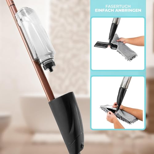 - ✅【Adjustable Spray Function】Equipped with a built-in spray bottle, this mop allows precise control of water or cleaning solution flow, preventing over-saturation, reducing drying time, and ensuring even coverage, while maintaining a spotless, streak-free finish on a variety of floor surfaces for superior cleaning performance. 💦