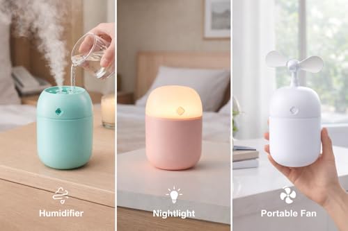 Generic - جهاز 3 في 1 مرطب هواء مع إضاءة ليلية ومروحة محمولة، تصميم مدمج 7x10 سم، متعدد الألوان، للمنزل والمكتب والسفر