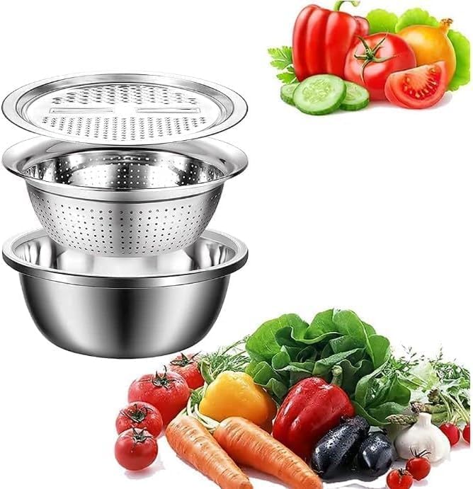- ✅ 【All-in-One Multifunction Tool】 This 3 in 1 kitchen set combines a dough mixer, grater, and large strainer into one compact, space-saving design, making it effortless to prepare meals, slice vegetables, and drain pasta without cluttering your countertop or wasting time. 🍴
