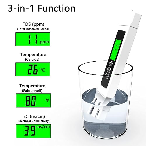 Generic - 3-in-1 TDS Meter Water Quality Tester with LCD Backlit
