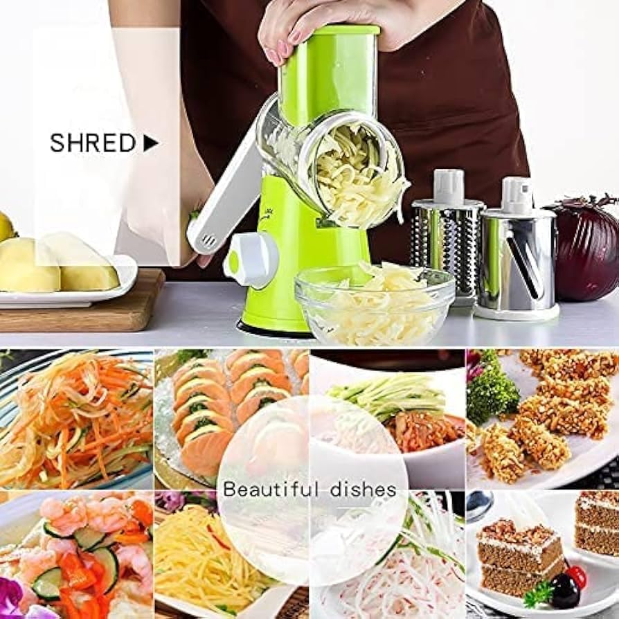 Spaceshoop - قطاعة خضروات دوارة 3 في 1 (أخضر) 3 سكاكين فولاذ المقاوم للصدأ، مصنوعة من بلاستيك ايه بي اس خالية من مادة بيسفينول أ